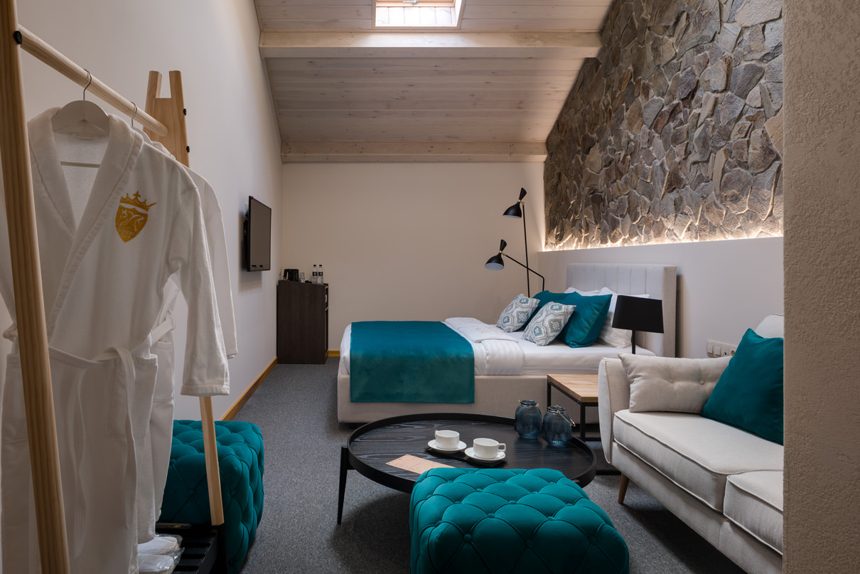 Comfortable room with a dormer window. Each room has an individual design in a modern style. Rooms with a dormer window have an enlarged area.