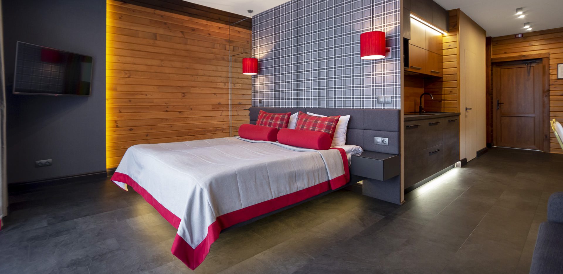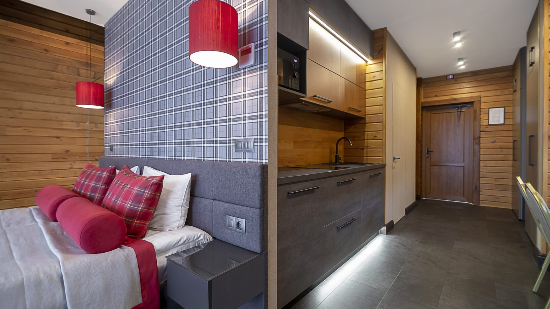 Номер предназначен для длительного проживания и имеет собственную кухню.