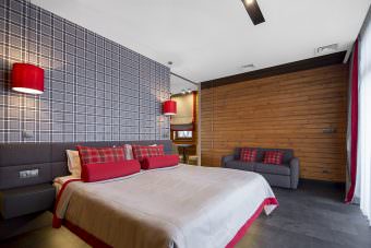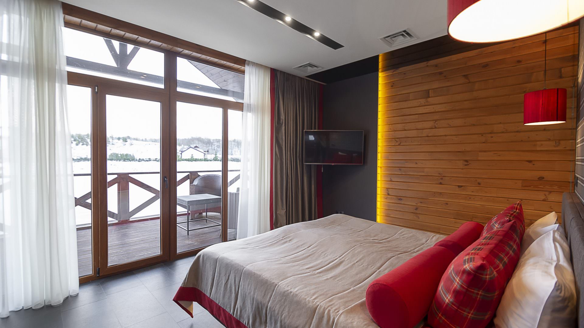 Бунгало расположено на берегу озера, имеет собственную террасу. Расположен в 30м от СПА центра. Бунгало двухкомнатный. В одной комнате расположена одна двуспальная кровать, во второй комнате две односпальные кровати.