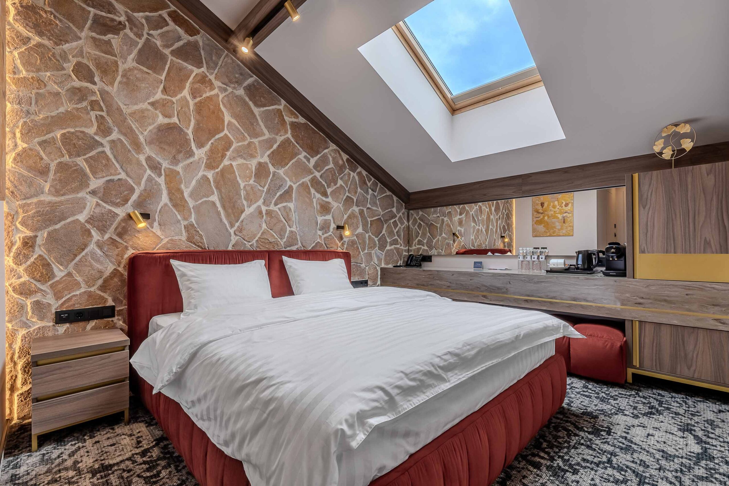 Капсульная кофеварка; wi-fi; сейф; телевизор; диван; полотенца; поднос гостеприимства (электрочайник, сахар, чай пакетированный); ковровое покрытие пола; кондиционер; мини-парфюмерия (гель для душа, лосьон, шампунь); халат; фен